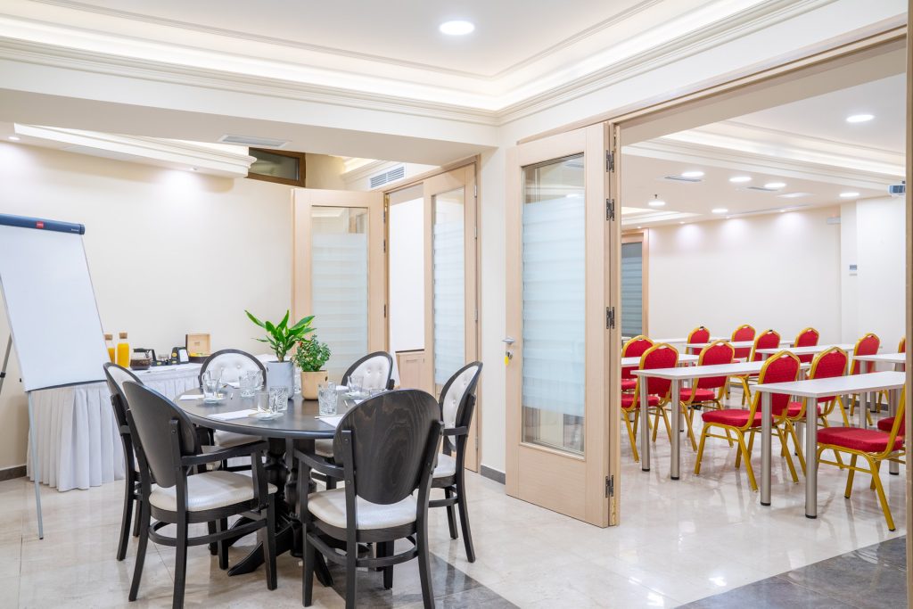 The hotel offers 3 comfortable event rooms for big professional events or small business meetings. The event rooms can accommodate up to 150 people providing all the necessary technical infrastructure for any kind of gathering.